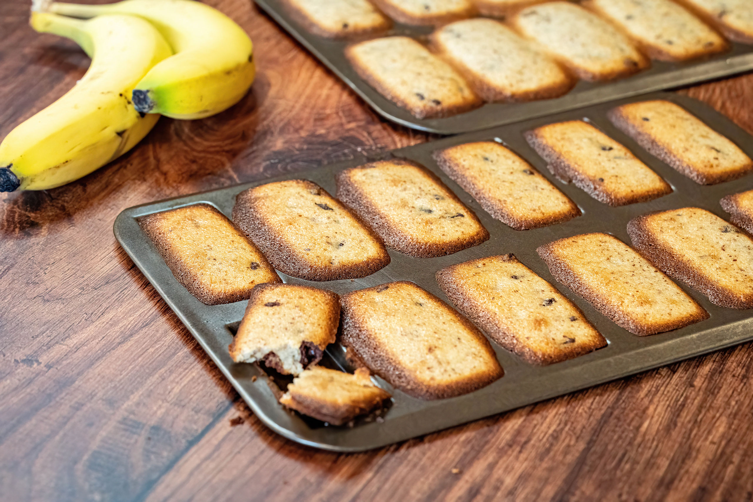 Give overripe bananas a second life with these tender almond financiers studded with chocolate chips. Ready in under 30 minutes, they deliver bakery-style flavour in bite-size form, making them perfect for lunchboxes, coffee breaks or an elegant brunch platter.